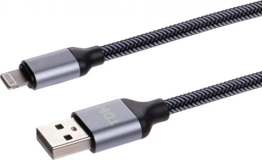 TDM Electric Дата-кабель, ДК 12, USB - Lightning, 1 м, тканевая оплетка, серый, цена за 1 шт