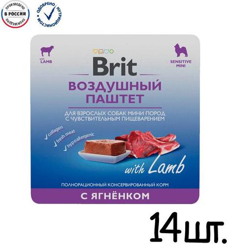 Характеристики Brit Корм для взрослых собак мини пород с чувствительным пищеварением воздушный паштет с ягненком, 100 г