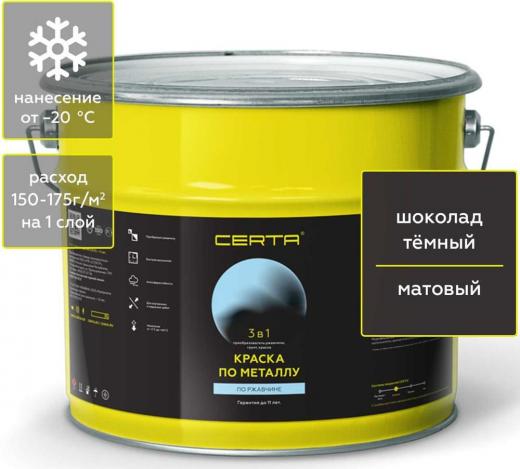 Характеристики Certa Краска по ржавчине металлу Краска 3 в 1 по ржавчине, металлу шоколад темный, 10 кг KRGL1012