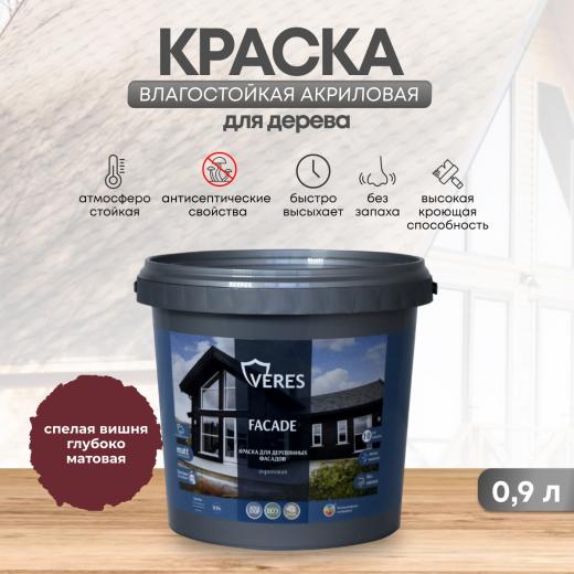 Veres Краска для деревянных фасадов Facade, акриловая, матовая, 0,9 л, спелая вишня