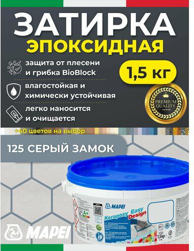 Mapei Эпоксидная затирка для плитки Kerapoxy Easy Design 125 Серый замок, 1,5 кг - Двухкомпонентная стойкая клей-фуга для плиточных швов от 1 мм/