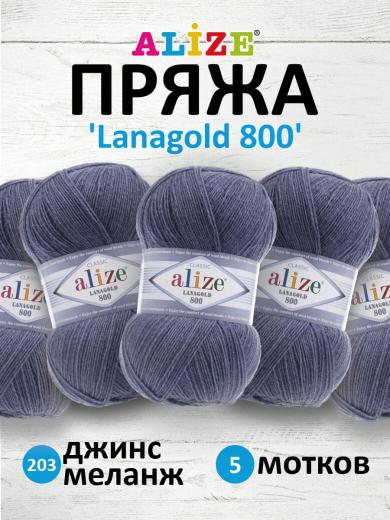 Alize Пряжа Lanagold 800 джинс/меланж, 51%акрил/49%шерсть, 800м, 100г, 3шт