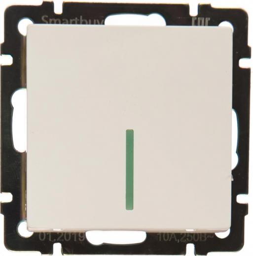 SmartBuy Выключатель 1-клавишный с индикатором 10А белый "Нептун", цена за 1 шт