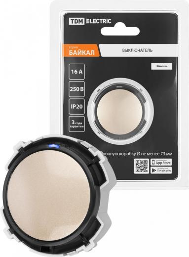 TDM Electric Выключатель 1-кл. 16А 250В кнопочный механизм шампань, Байкал, цена за 1 шт